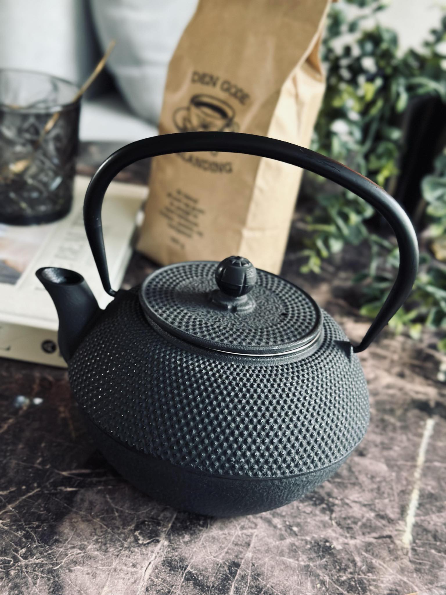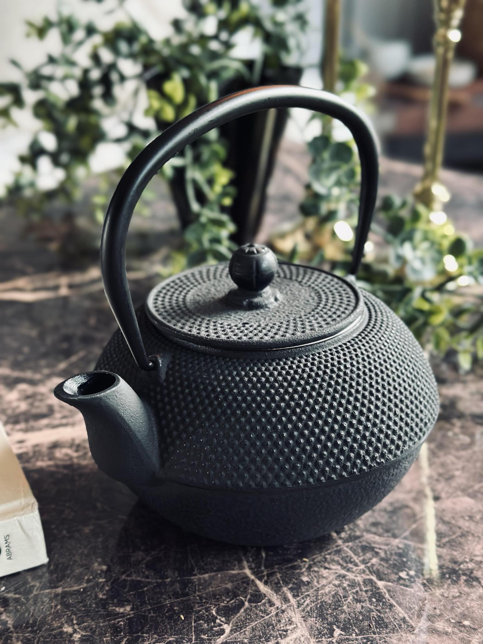 Smuk tepotte, lavet i Støbejern, hvilket gør, at den holder din te varm i længere tid.