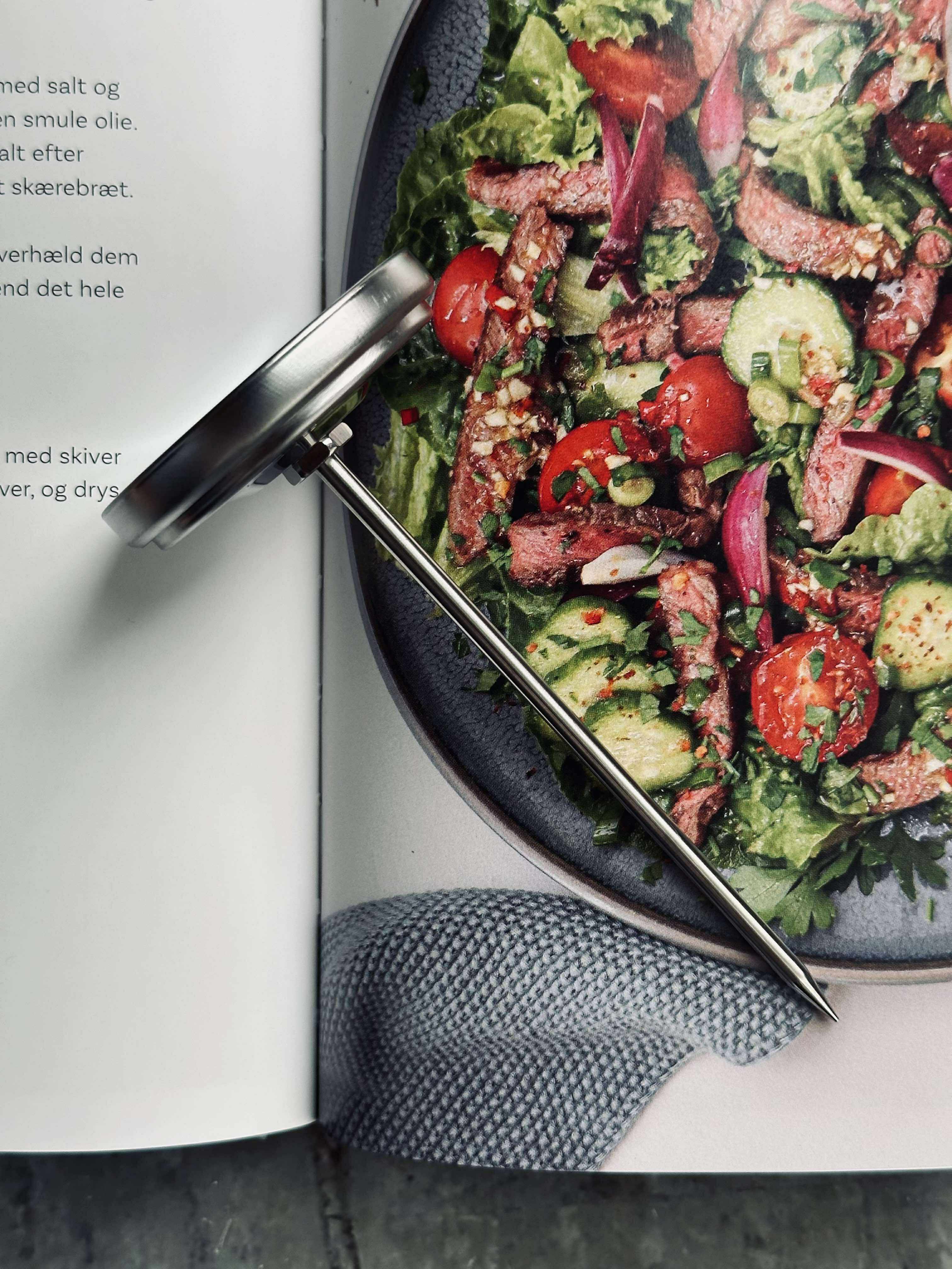 Et kompakt og enkelt termometer, der gør det nemt at holde øje med temperaturen under tilberedning af kød. Med sin størrelse er det let at opbevare i køkkenskuffen og have lige ved hånden ved madlavning.